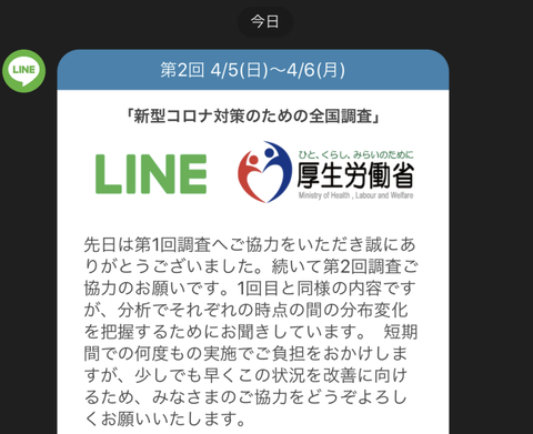 関連:LINEの新型コロナ調査に約2450万人が回答「オンライン調査の歴史に残る、桁違いの回答数」 : IT速報