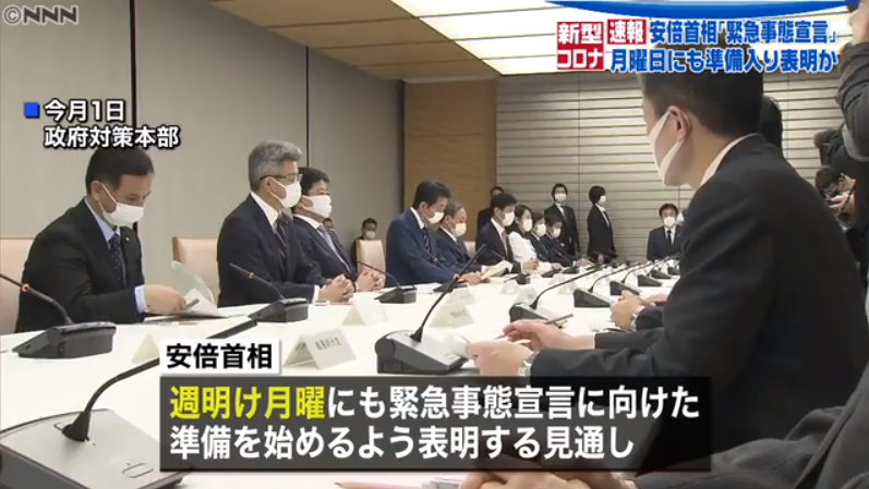 安倍政権、新型コロナ緊急事態宣言リャンシャンテン