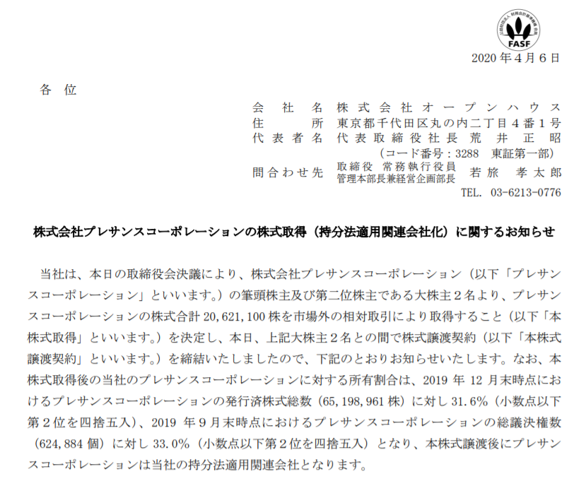 プレサンスとオープンハウス資本業務提携すんの?悪魔合体じゃん。