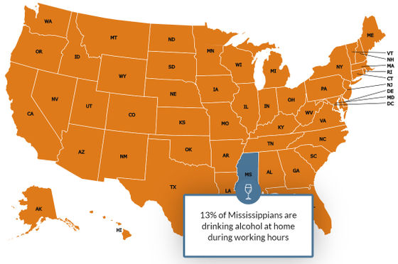 アルコール依存症患者の支援団体Alcohol.orgは、アメリカ人労働者3000人に対する調査の結果から判明した、
