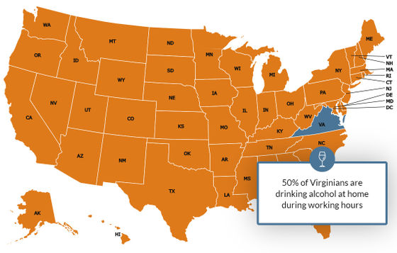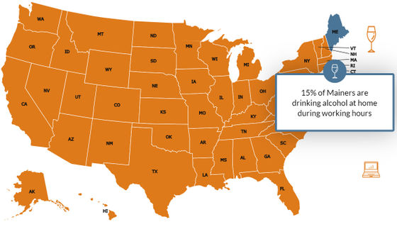 一部の州では「労働者の半分近くが在宅勤務中にアルコールを飲んでいる」ことが分かりました。
