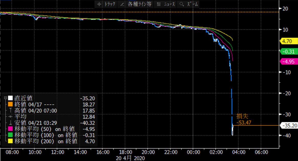 WTIっていうアメリカの原油価格指標がある、今コロナで誰も原油使ってなくてアメリカの原油保管タンクがパンク状態、