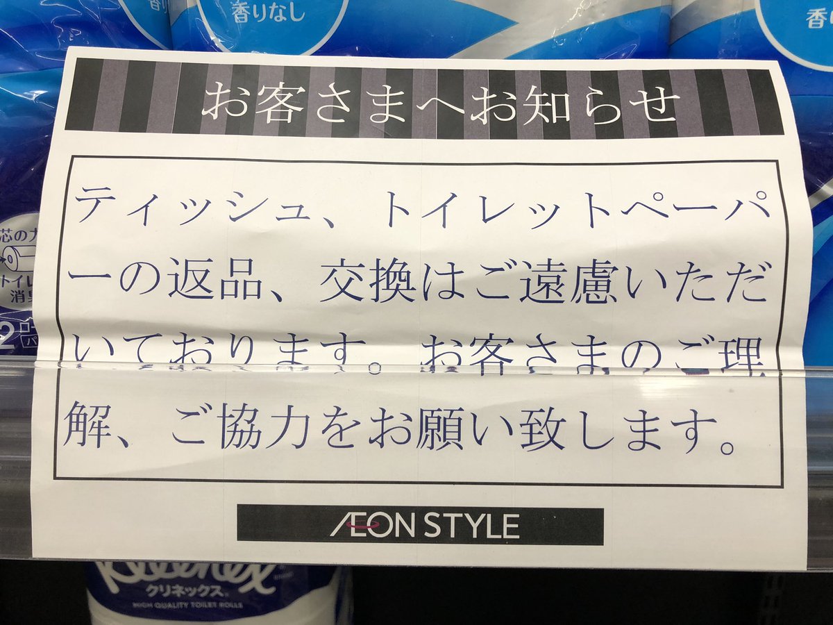 逆オイルショック(民衆がトイレットペーパーをひたすら売り場棚に置きはじめる)