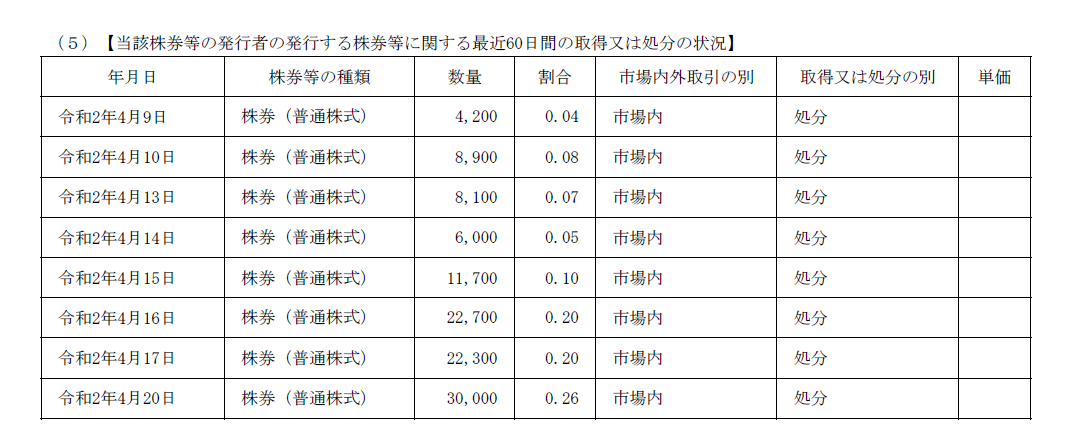 — 大量保有報告書速報@会社四季報オンライン (@shikihojp_lvh) 2020年4月20日
