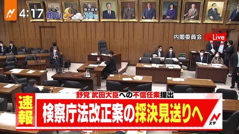 【朗報】検察定年延長の採決見送り。国民の抗議により阻止