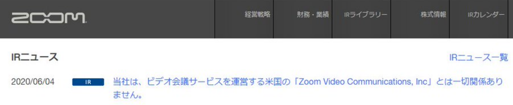 「当社は、ビデオ会議サービスを運営する米国の「Zoom Video Communications, Inc」とは一切関係ありません。」