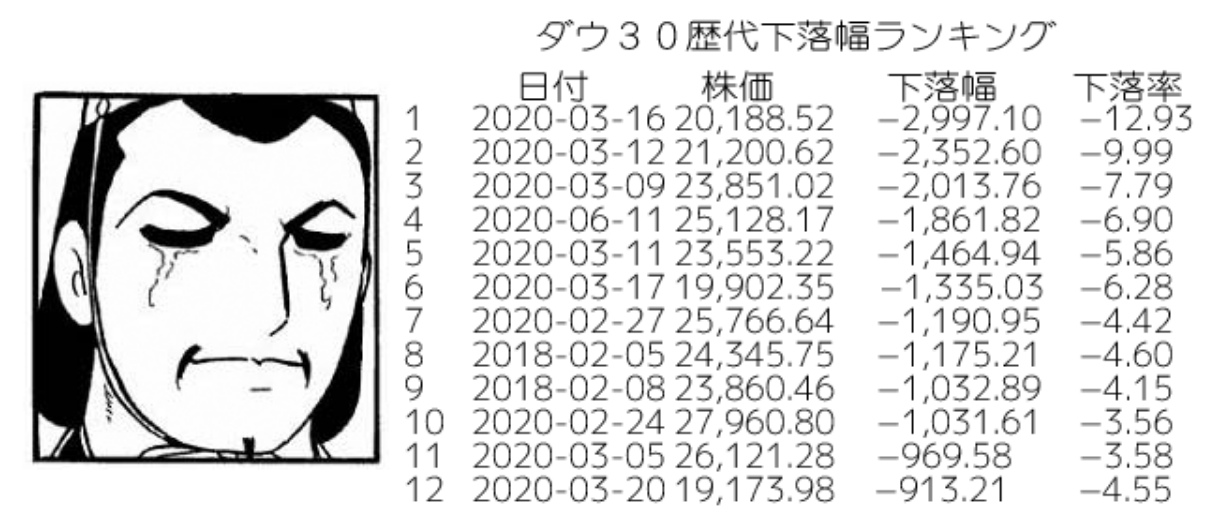 下落幅で歴代4位 pic.twitter.com/FVykobZxPB— 新泉© (@araizumiC) June 11, 2020