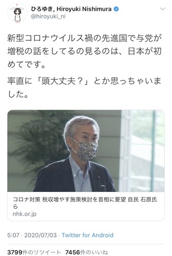 ひろゆき「コロナ禍の先進国で与党が増税の話をしてるのは日本だけです。頭大丈夫ですか?」