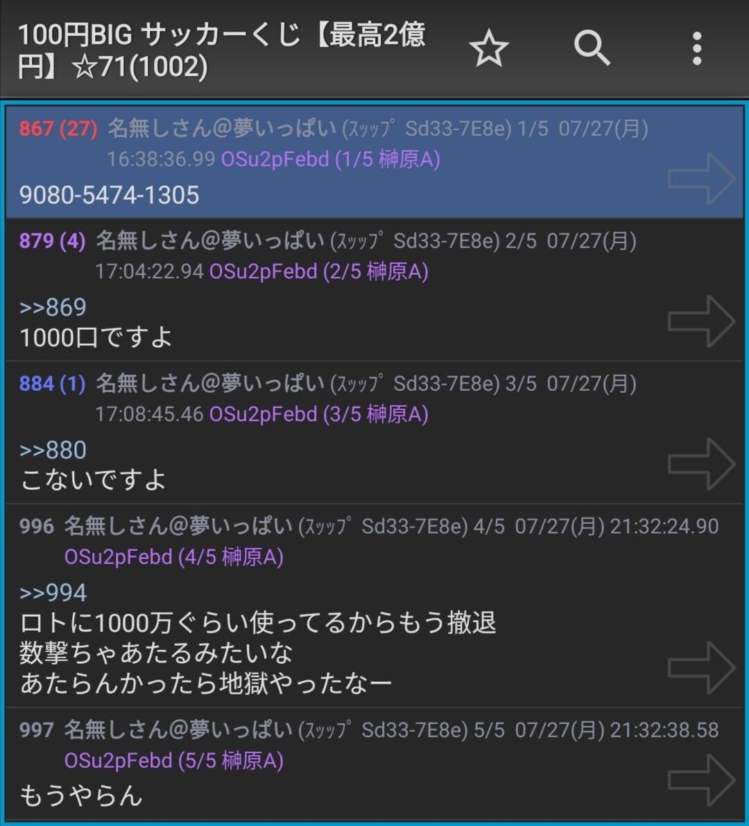 【画像あり】宝くじ板に2億円当選者が降臨!!!!!