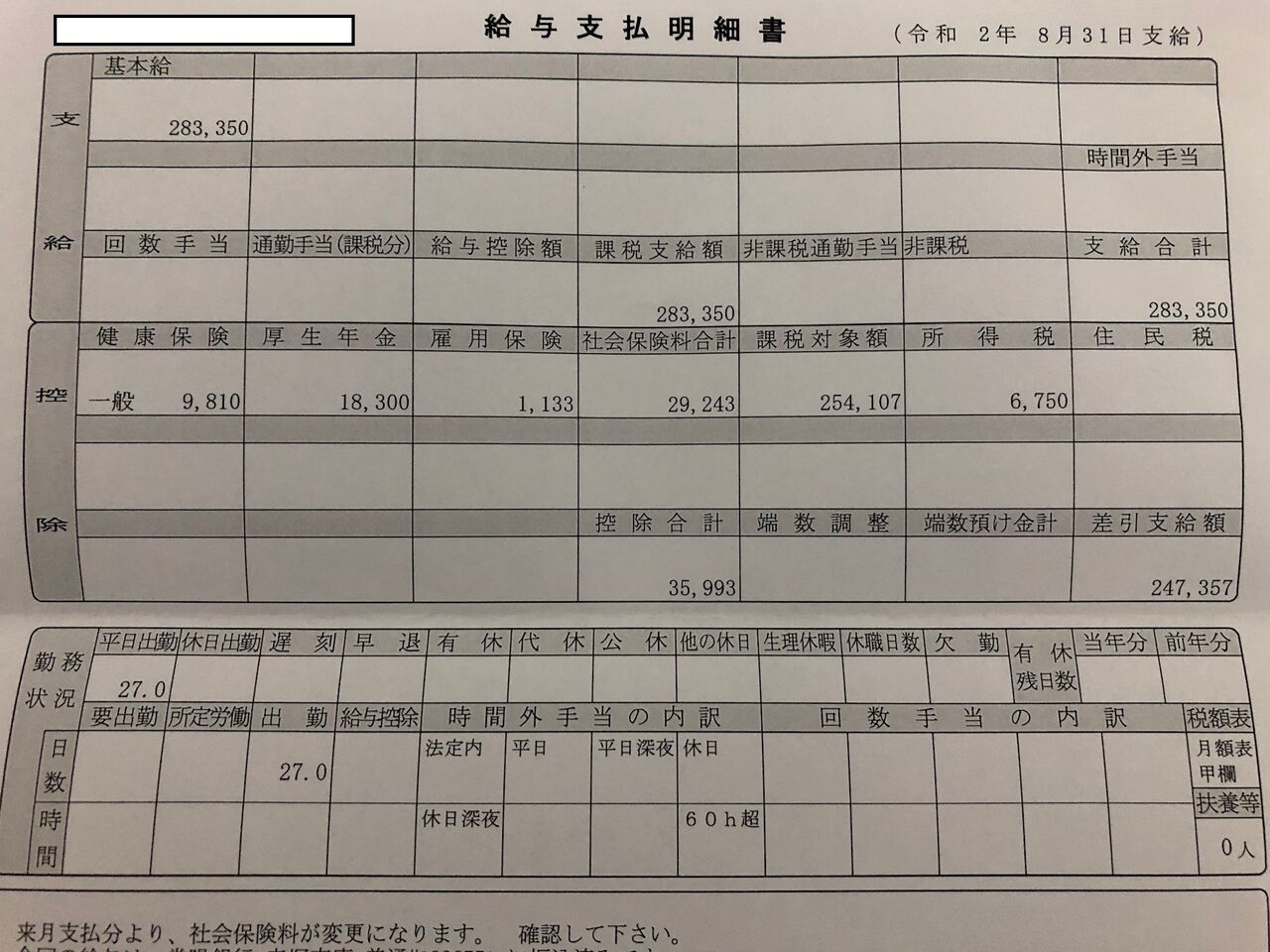 【画像あり】ワイの給与明細をご覧下さいwwwwwwwwwww