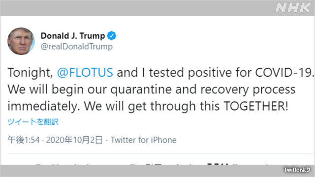 トランプ米大統領、新型コロナ陽性