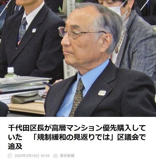 石川区長が「パークコート三番町ヒルトップレジデンス」の事業協力者住戸を乙区なしの現金買いしているのが見つかって大炎上。しかし当マンションは千代田区の総合設計制度で規制より10m高く建てさせてもらっているのだ。これが事業協力者でなくて何なんだ!#クソ物件オブザイヤー2020 pic.twitter.com/5zFCtNvOWp— 空家ベース_SORA-IE BASE (@soraie_base) November 16, 2020