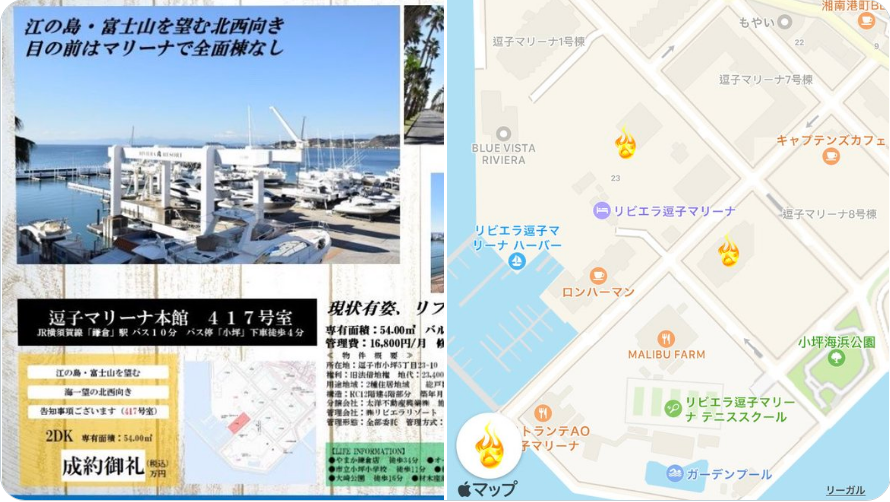 ちなみに大島てるには載っていない(🔥は別の事件)#クソ物件オブザイヤー2020 pic.twitter.com/Q3QYyZNIJq