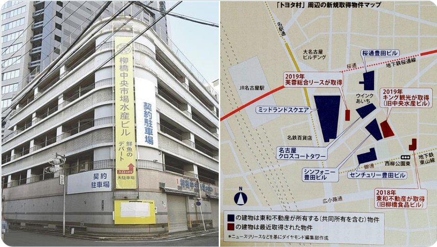 トヨタグループの東和不動産により名古屋駅前に形成された通称「トヨタ村」。更なる拡張計画の大本命だった本件を、何とパチンコ店展開のキング観光が約120億円という投機的価格で強奪。世界のトヨタの野望がパチンコ屋に阻まれるという残念な結果に。