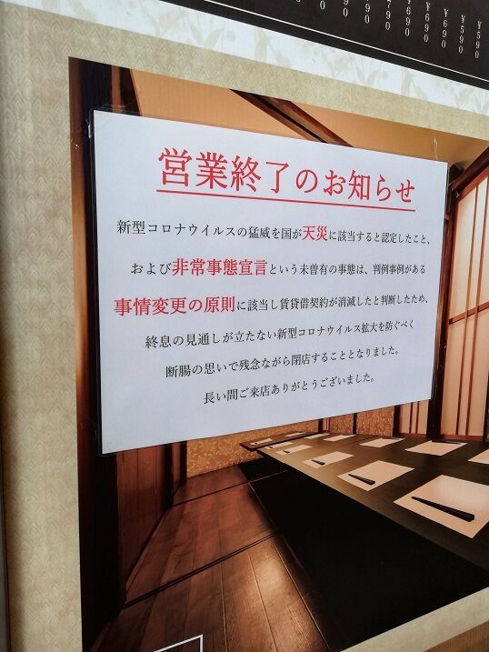 【賃貸借契約は消滅する】Covid19の緊急事態宣言と自粛要請に伴い窮地に追い込まれる飲食店。アクロバットな解決策として“謎の判例事例の事情変更の原則”で賃貸借契約が消滅する、と言う理論を展開。Covid19は消えて欲しいけど賃契勝手に消すのはダメ、絶対。#クソ物件オブザイヤー2020 pic.twitter.com/MN9rj7lEZj