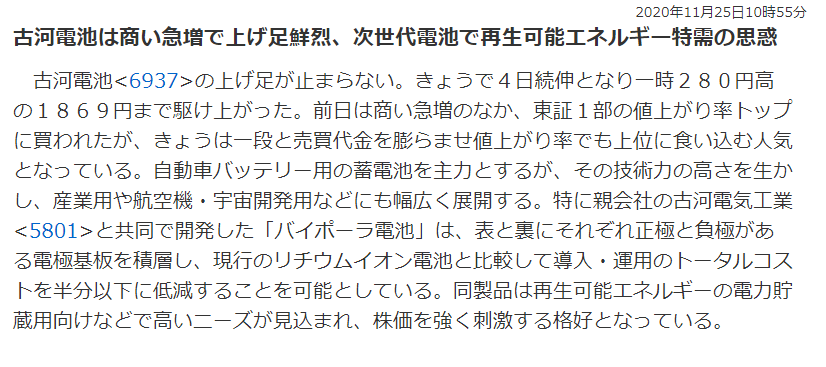 正直者の古河電池は株を上げたな