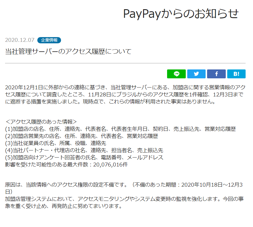 PayPay、「不正アクセスによる最大約2008万件の顧客情報漏洩の可能性」を穏やかなタイトル「当社管理サーバーのアクセス履歴について」でダメージコントロール