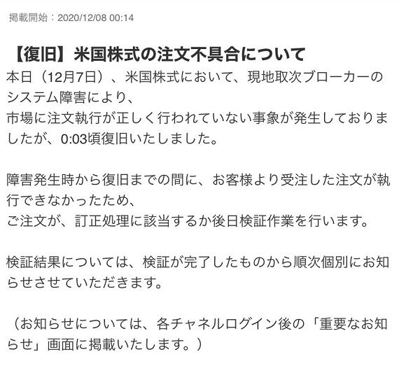 SBI証券は米株取次会社のせいにして発注2系統整備もしてないことが露呈してるんやな