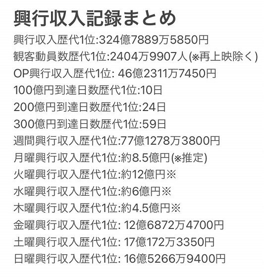 これから先この記録を越える作品は現れるのでしょうか…? pic.twitter.com/bNelCm0wTd— タロイモ🎬興行収入まとめ (@eigarankingnews) December 28, 2020