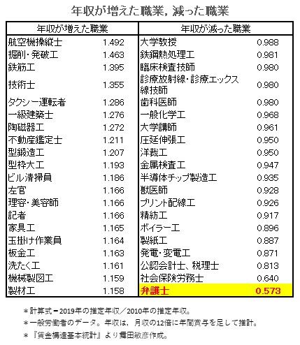【画像あり】10年間で年収が減った職業と上がった職業が判明wwwwwww