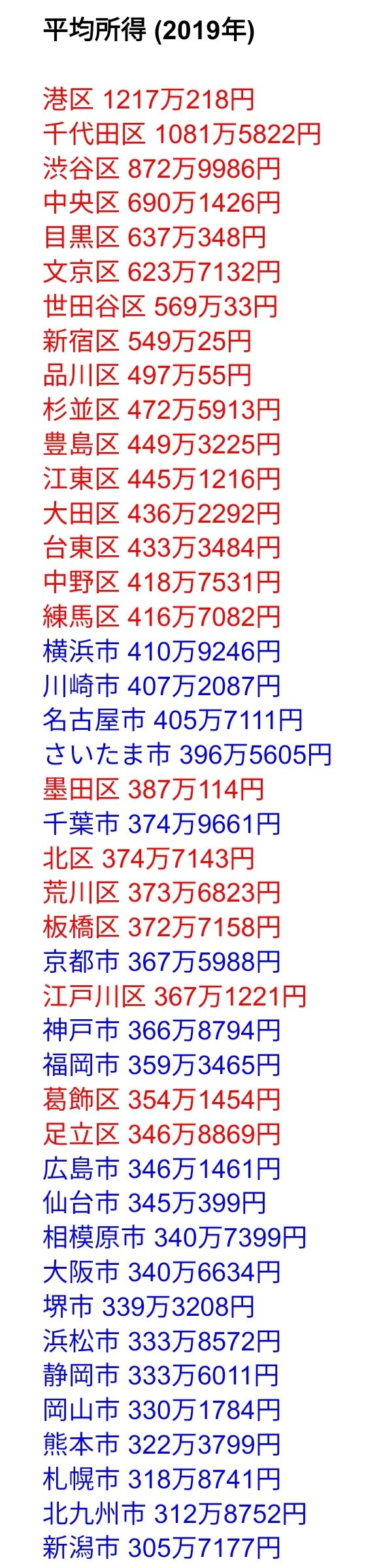 【画像あり】東京23区と政令指定都市の平均所得を比較した結果がこちらwwwwwwww