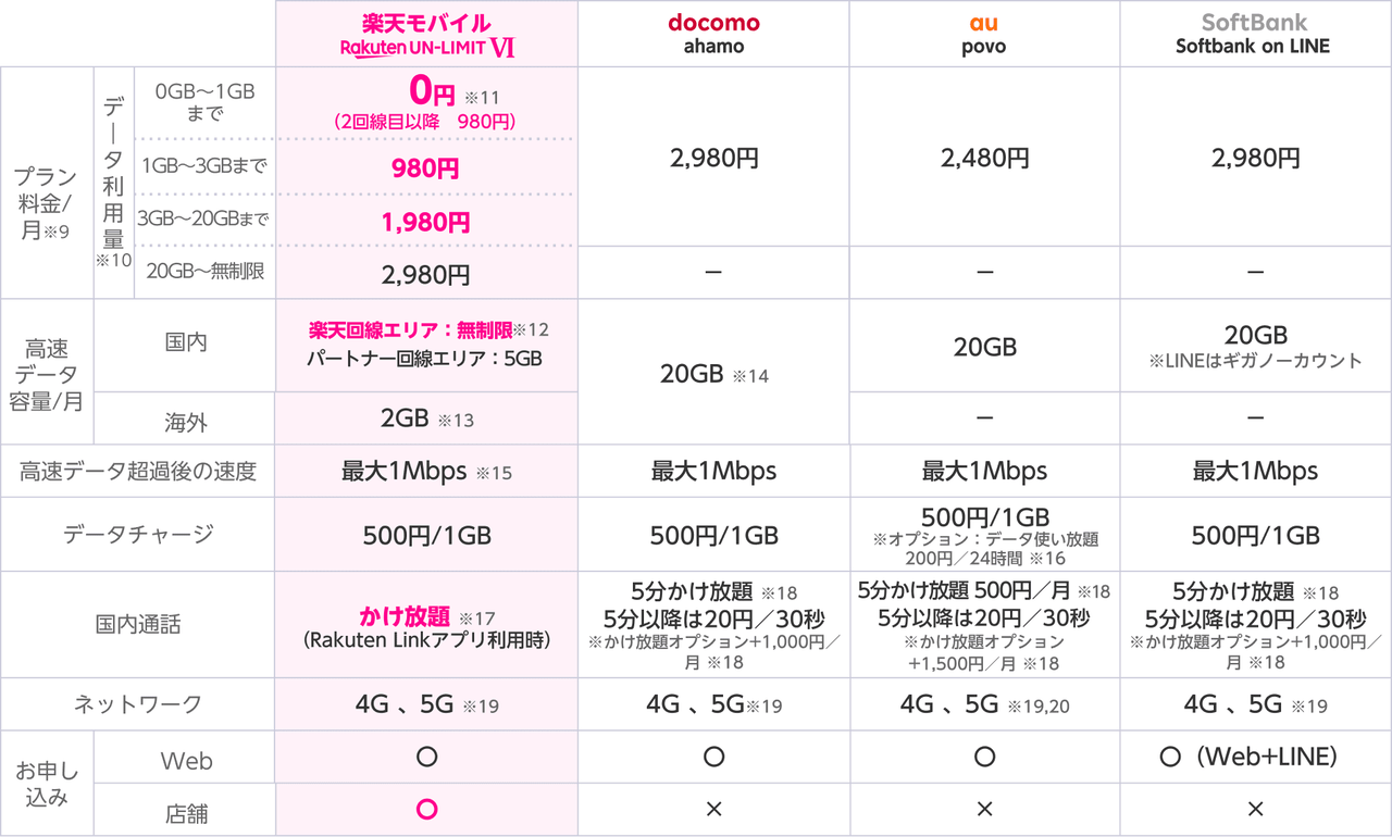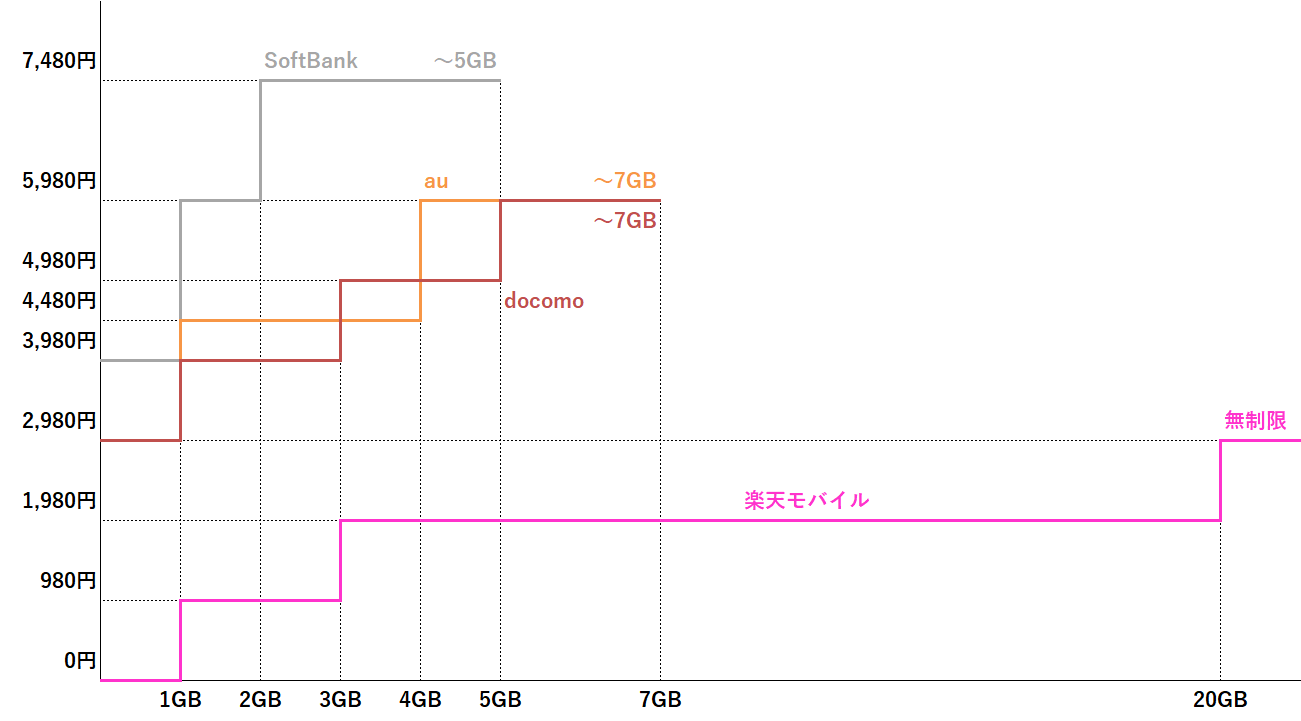 携帯4社の段階制プラン比較。楽天つよすぎ pic.twitter.com/RslQw64Em8