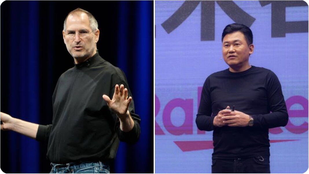 ジョブズがいつも同じ服装なのは毎日ファッションに時間使うのもったいないってシンプルな格好になったって話やっけ。ミッキーはガワだけ真似してもコントにしか見えねえ…。