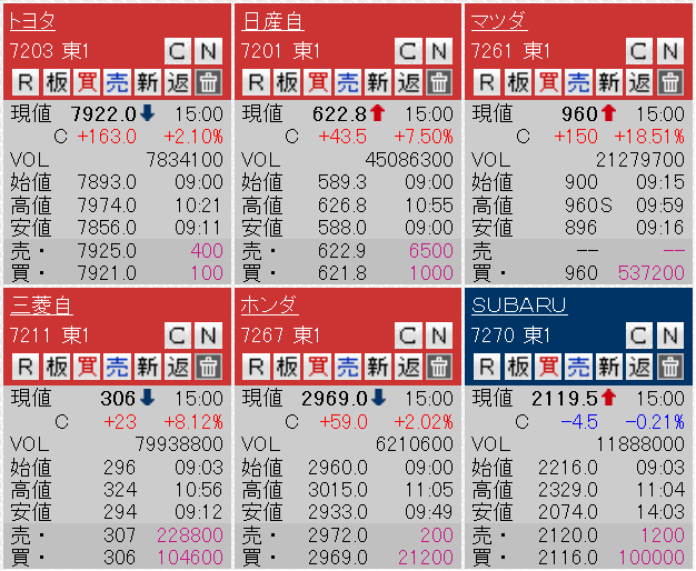 大型のマツダが材料株になってるw