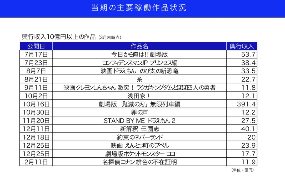 東宝、鬼滅大ヒットしててこんなもんなんかって決算だな。無かったらやばやばのやばぢゃん。