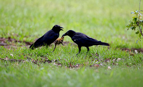 カラス「カエル食うやでぇー」他のカラス(ファーwwあいつ毒ガエル食おうとしてるンゴ)