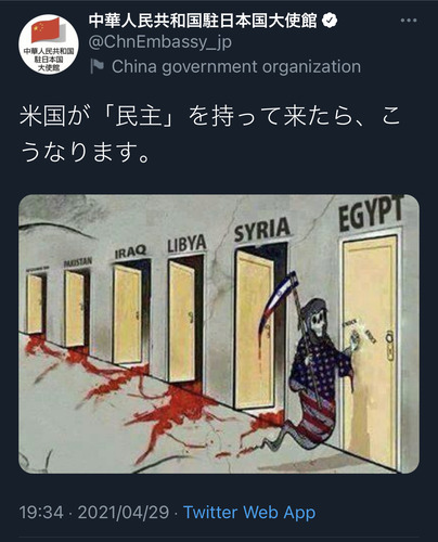 トレンドhttps://twitter.com/chnembassy_jp/status/1387716988760252416?s=21