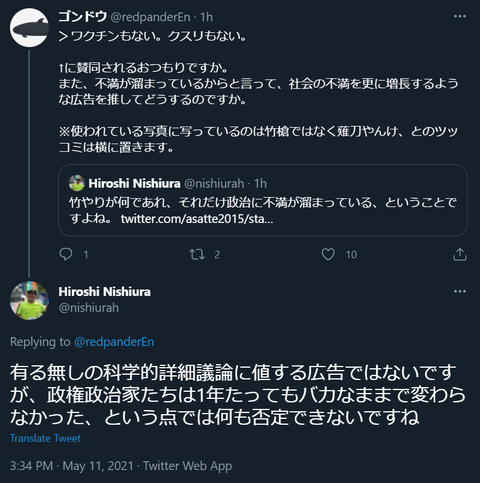 有る無しの科学的詳細議論に値する広告ではないですが、政権政治家たちは1年たってもバカなままで変わらなかった、という点では何も否定できないですね