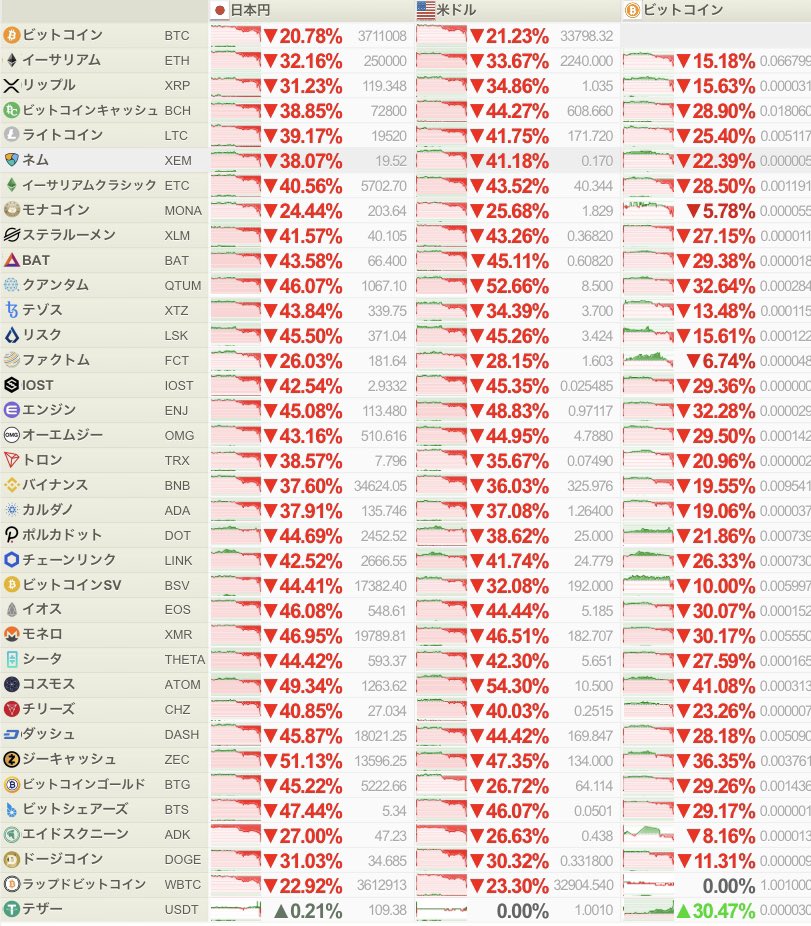 一瞬で4、50%落ちるとかまだまだ仮想通貨というのはゴミやな