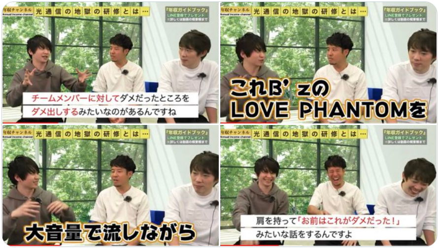 研修でパチンコ屋レベルの大音量でB’zのLOVE PHANTOMを流しながらお互いのダメなところを超大声で発表させ合う光通信ほんま最高やな pic.twitter.com/xXBOZLKGFU