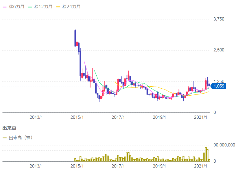 gumiは結局上場時の3,300円を越えることが出来なかったね