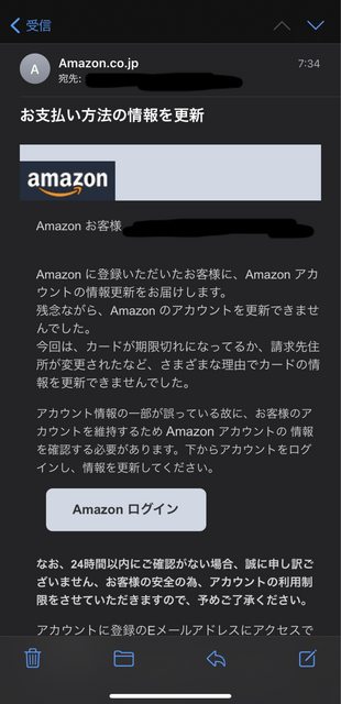 【画像あり】Amazon(偽物)「カードの有効期限切れやで」←これwwwwww