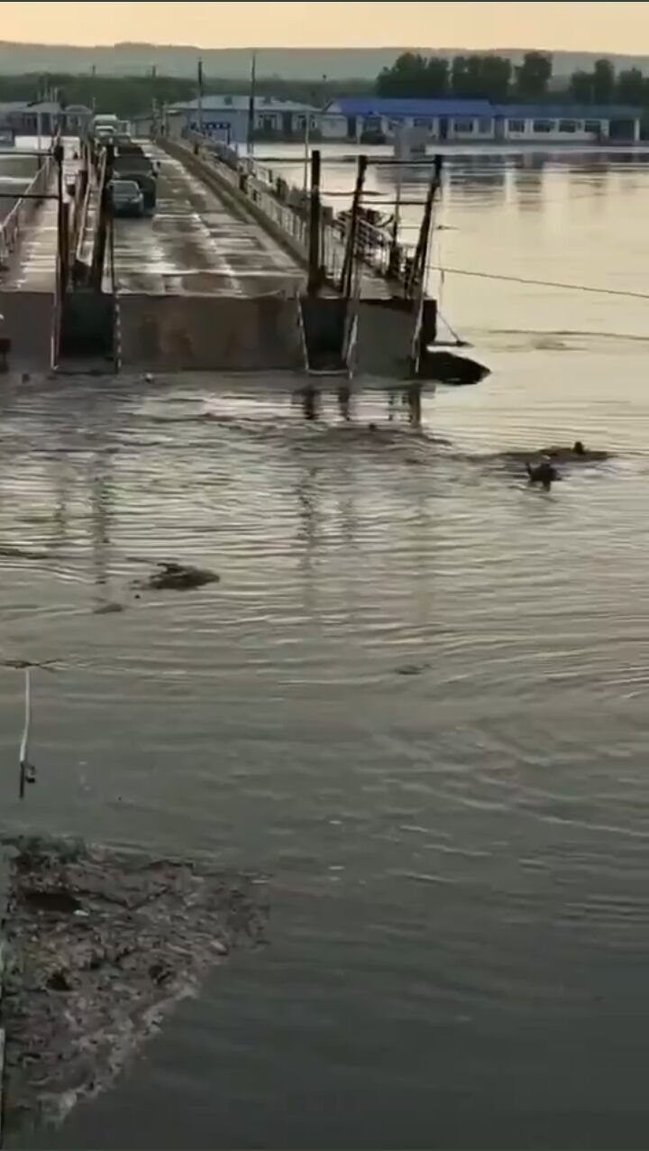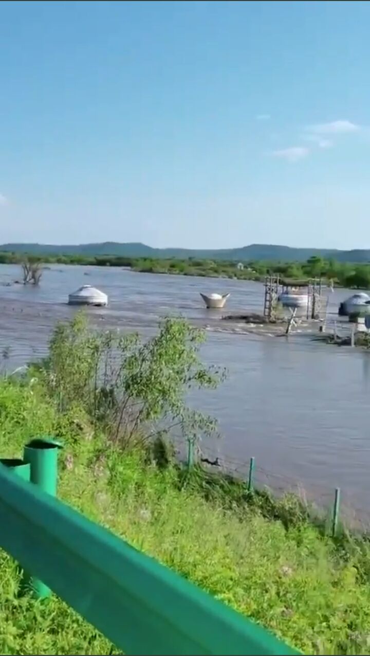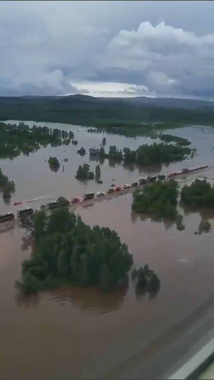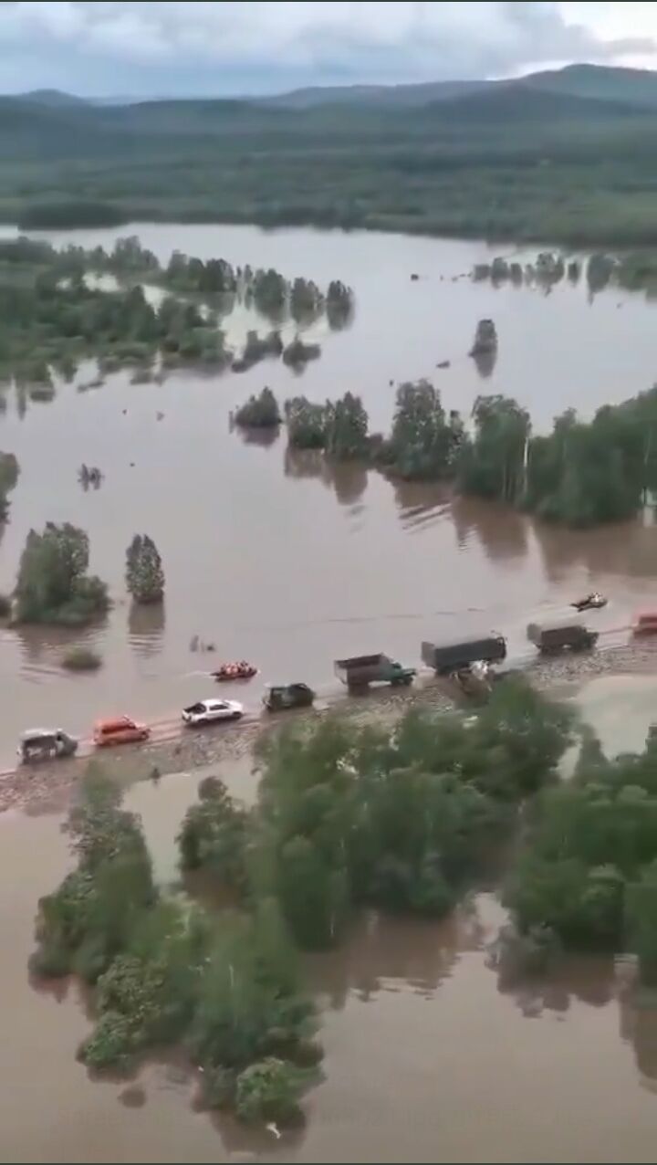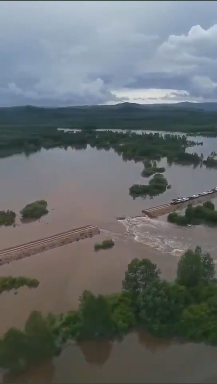 6月21日黑龙讧,黑河市嫩江出现水位上涨,两岸己是汪洋一片,多辆汽车被困在浮桥上 pic.twitter.com/311kt99bzS
