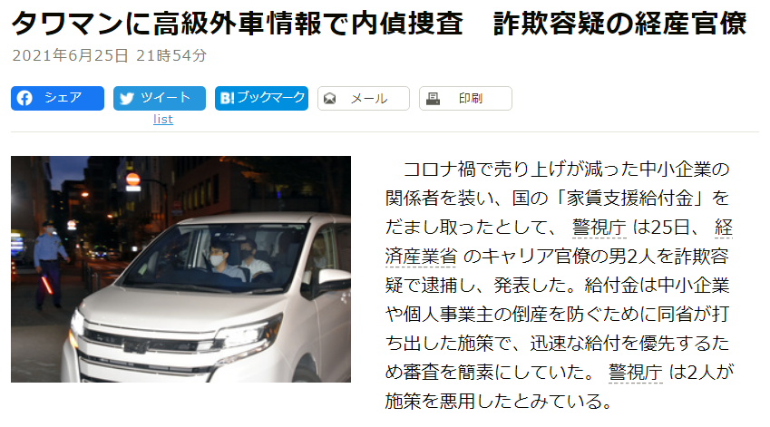 家賃支援給付金をだまし取ったとして、経済産業省のキャリア官僚の男2人が詐欺容疑で逮捕された事件。2人は高校の同級生でした。