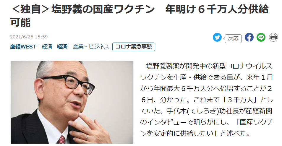 …後発ワクチンの出番ないでしょ?— 新型コロナウイルス_ワクチン情報 (@VaccineWatch) June 26, 2021