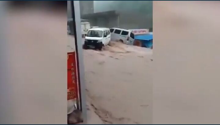 大陸多地極端天氣頻現。7月7日,重慶多地 #暴雨, #洪水 來襲,很多道路都被大水淹沒,車輛衝走。 #大紀元新聞網