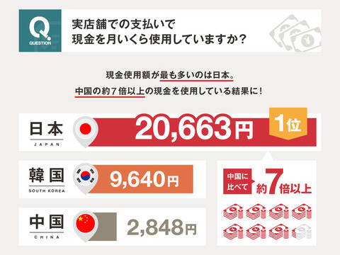 【悲報】日本人さん、現金使用平均額が中国の7倍、韓国の2倍になってしまう…