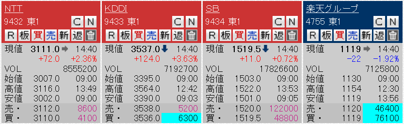 携帯会社の株価、スガ辞任歓迎しすぎだろwwww
