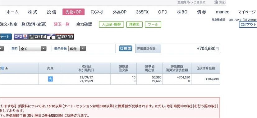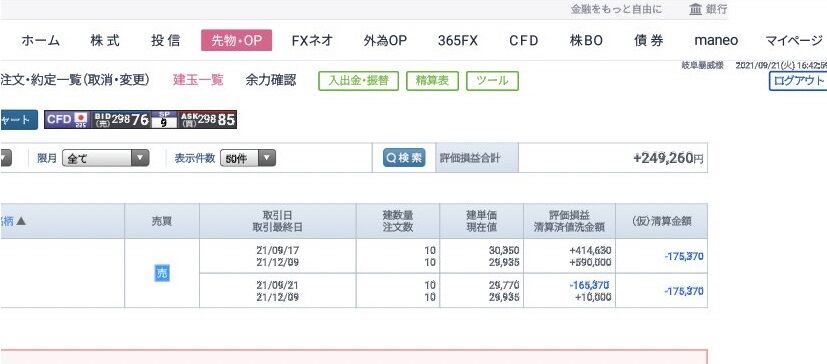 ・岐阜暴威さん、225先物の両建からロングポジションをロスカット(-22.2万円)