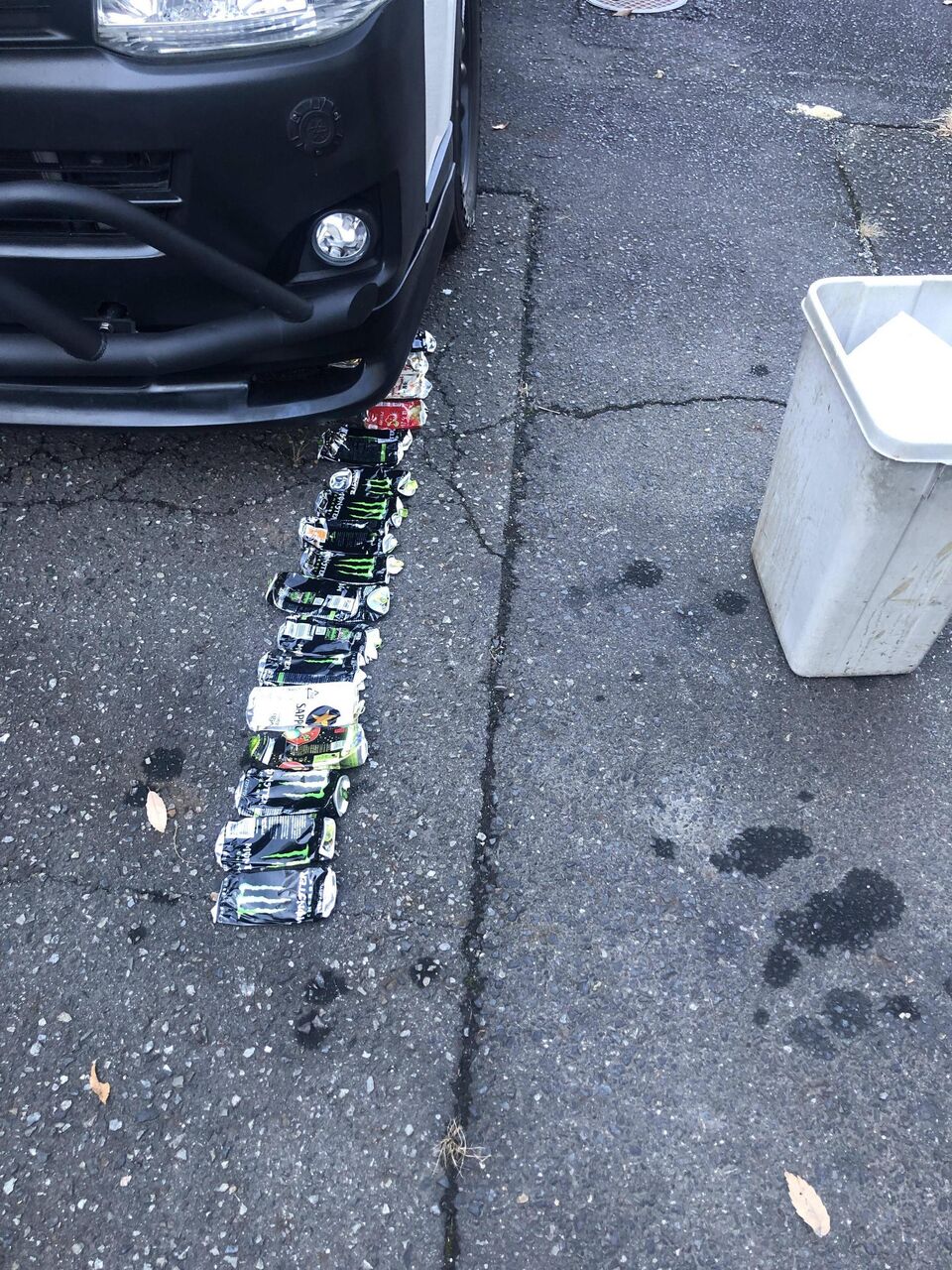 【画像】車で空き缶潰すとめちゃ楽www
