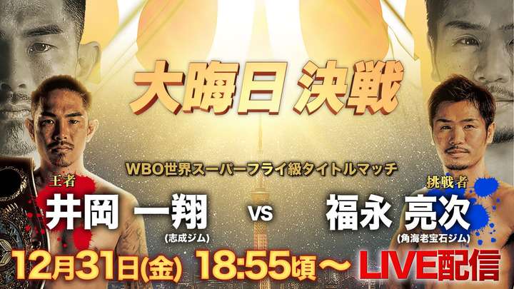 井岡一翔選手:福永亮次選手との大みそか決戦 「Paravi」でライブ配信決定