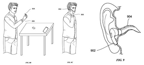 この特許は、2つのデバイスを組み合わせて使う際、耳に装着する第2のデバイスがユーザー認証し、両デバイスを利用できるようにする技術を説明したもの。第2のデバイスは、耳の内部に送った音波の反射音から耳内部の形状を数値化し、装着したユーザーが正規のユーザーかどうか確認する。正しいユーザーと判断したら、第1のデバイスに届いた音声メッセージを第2のデバイスで再生可能にしたり、第1のデバイスを介す音声コミュニケーションを第2のデバイスで始めたりする。