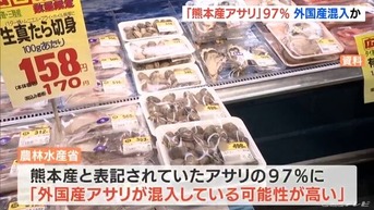 中国産のアサリが「熊本産」と偽って販売されていた問題で、農林水産省は調査の結果、「熊本産」として販売されるアサリの97%に「外国産が混入している可能性が高い」と発表しました。