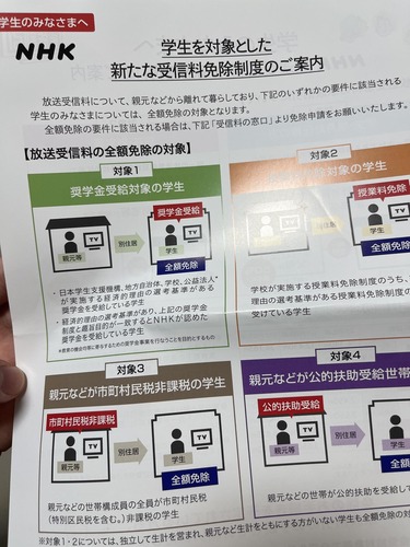 テレビとワンセグ機能の家電持ってないって言ったら、あっさり帰って行ったわ。2人組で来てて怖かったンゴ