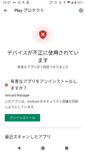 vanced managerを有害アプリ認定した模様
