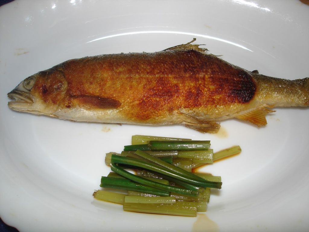焼き鮎と山菜の付け合わせ(蕨とフキ)